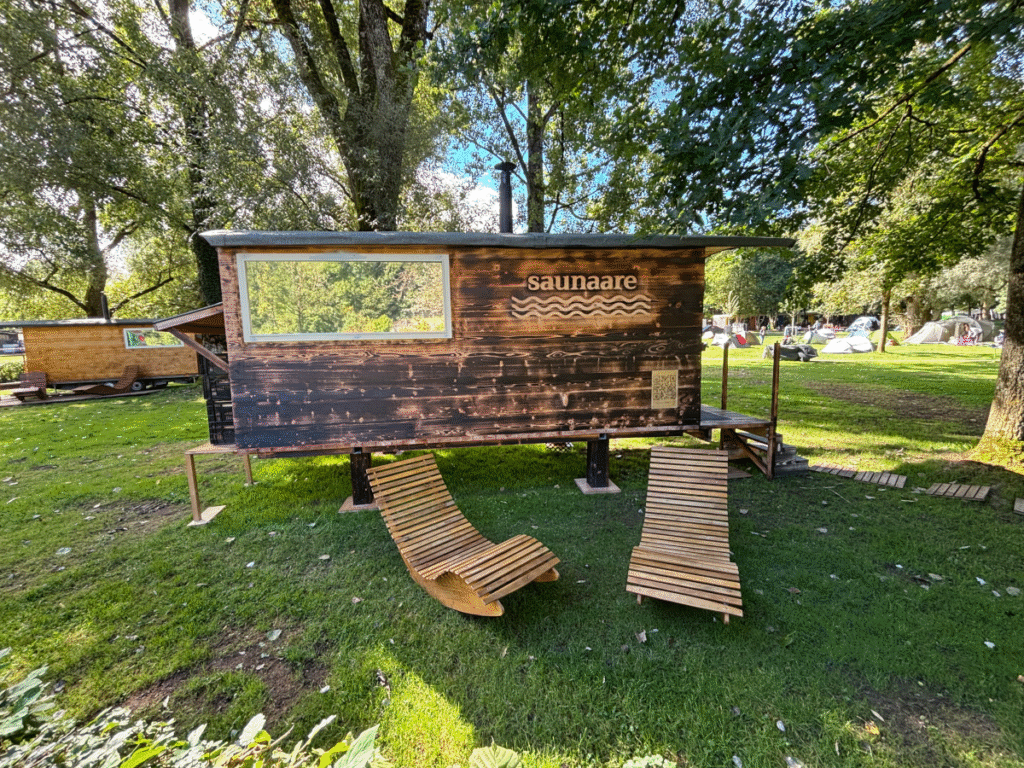 Die Sauna in Bern auf dem Campingplatz Eichholz bietet Platz für 6 bis 8 Personen. Im Campingplatz hinter der Hecke geniesst du Privatsphäre fast wie bei dir zuhause. Das Panoramafenster der Sauna bietet einen tollen Blick auf die Aare. Die Sauna wird mit einem Holzofen geheizt, den du selbst einfeuerst. Du bestimmst alleine, welche Temperatur für dich angenehm ist und machst Aufgüsse nach deinem Gusto. Der Eingang zur Sauna befindet sich Aareabwärts.